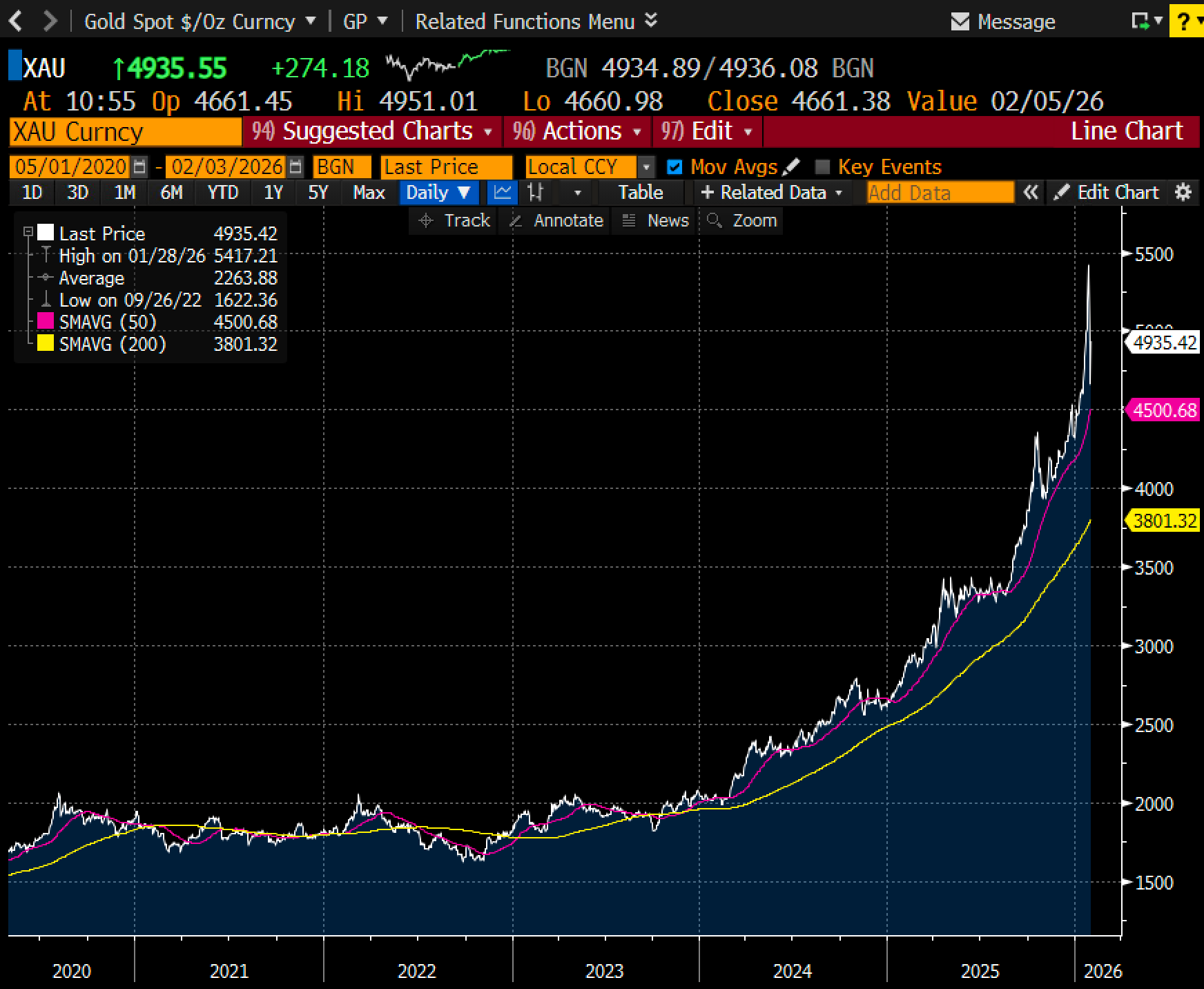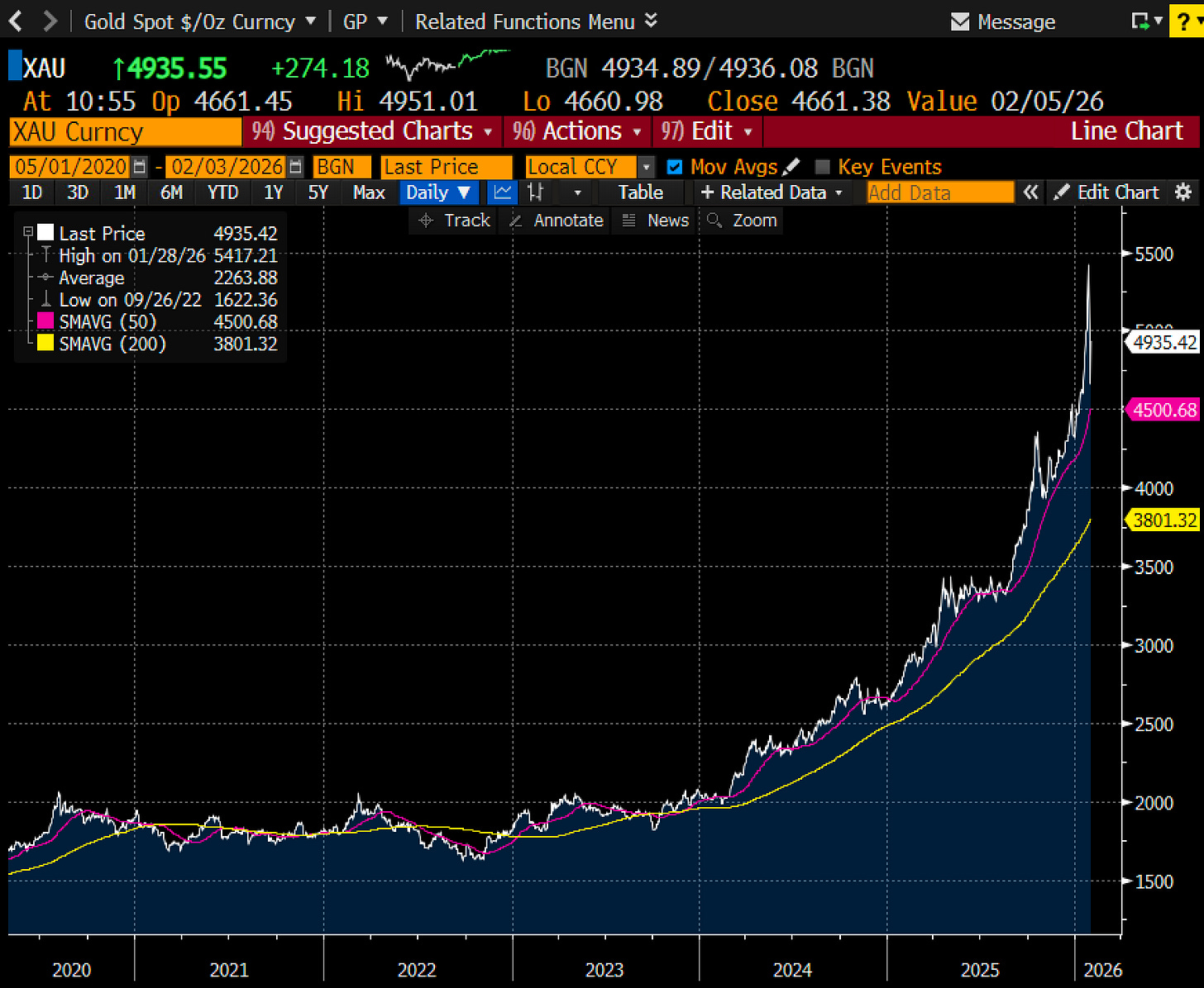 Gold ran up ~25% from the end of 2025 through last Wednesday. That’s 28 calendar days and ~20 trading days. Gold trades from Sunday night through Friday late afternoon… almost round-the-clock.
