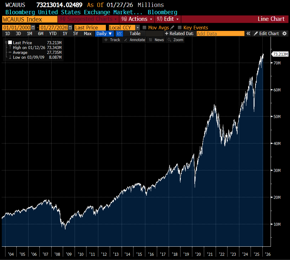 Meanwhile, gold at ~$37 trillion is fully valued…. If you argue against that in the comments, be sure to tell us what kind of drama you expect ahead that justifies a higher gold valuation.